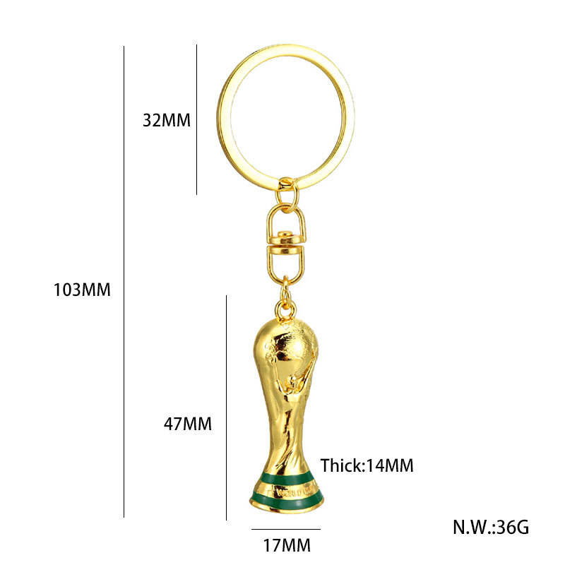 Si sos fan del fútbol, este llavero es obligatorio en tu colección. Fabricado en aleación metálica de alta calidad, presenta un acabado dorado brillante que replica fielmente la icónica Copa del Mundo.