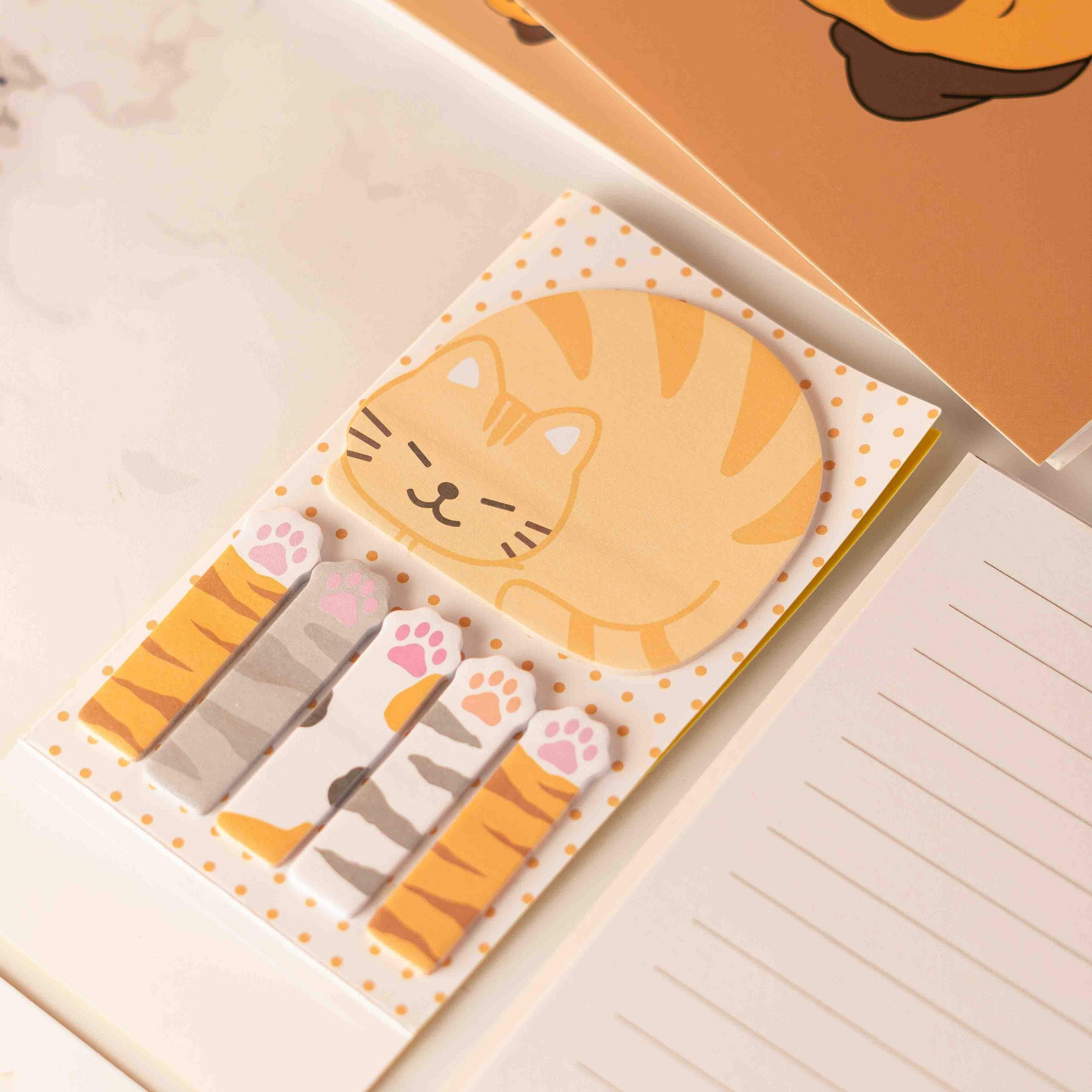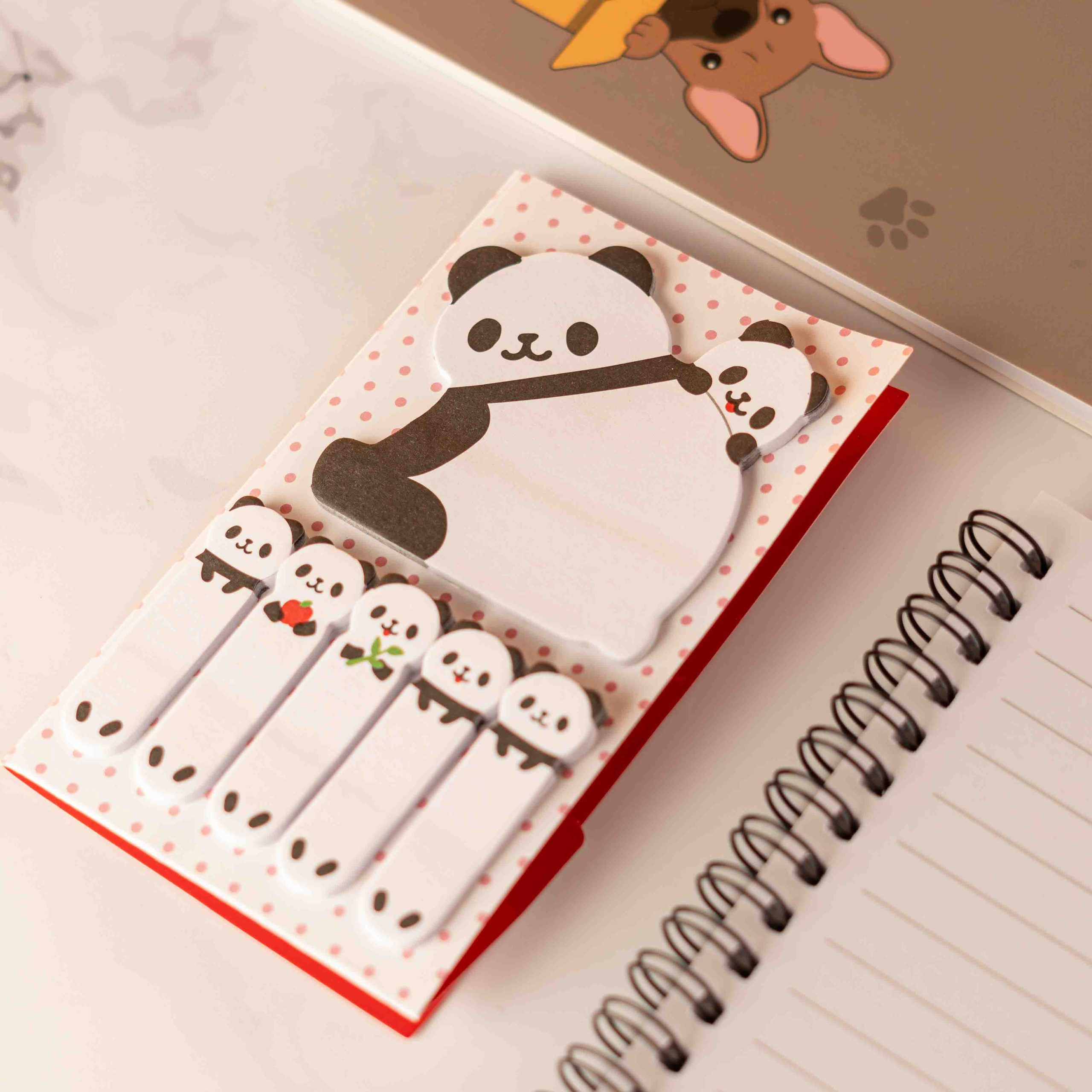 Organizá tus ideas con el toque más tierno 💕. Cada set trae una nota adhesiva grande para escribir (gato dormilón o panda abrazando) y 5 tiras de señaladores a juego para marcar páginas, dividir temas o dejar mini recordatorios.